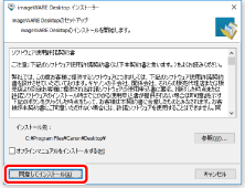 インストール先を変更する場合は、[参照]をクリックし、インストール先を指定して[OK]をクリックします。 オフラインマニュアルをインストールする場合は、[オフラインマニュアルをインストールする]のチェックマークを付けます。 使用している環境によっては、インストールの際にアプリケーションの停止を促す確認メッセージが表示されます。メッセージに従い、Desktopのインストールを継続してください。 ![]() Desktopの動作に必要なプログラムがコンピューターにインストールされていない場合は、必要なプログラムが自動的にインストールされます。 必要なプログラムのインストールが終了すると、プログラムのインストール画面は自動的に閉じられ、Desktopのインストールを継続します。 |
