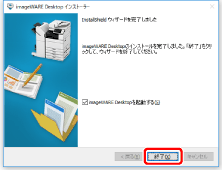 [imageWARE Desktopを起動する]にチェックマークを付けていた場合、Desktop Browserの起動後、Desktop Editorが起動し、『すぐわかるDesktop』を表示します。 本製品のインストール後、Windowsの[デスクトップ]画面にDesktop BrowserおよびDesktop Editorを起動するためのショートカットが自動的に作成されます。 使用している環境によっては、インストールの途中、またはインストールの完了後に再起動を要求される場合があります。インストール中に再起動を行った場合は、再起動後にAdministrator権限を持つユーザーでログインすると、途中からインストールが再開されます。 |