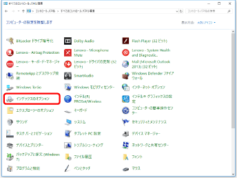 コントロール パネルに[インデックスのオプション]が見つからない場合は、コントロール パネルをアイコン表示に変更してください。 |