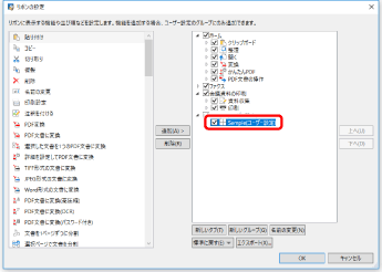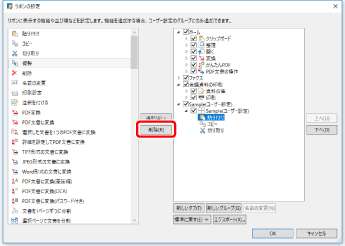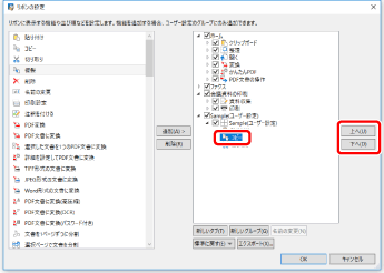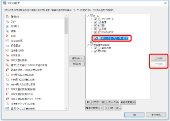 グループの並び順を変更する場合は、右側の一覧から並び順を変更するグループを選択して、[上へ]/[下へ]をクリックします。