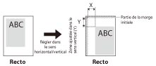 La position d'impression sur le recto est réglée dans les sens vertical ou horizontal, jusqu'à la valeur définie.
