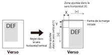La position d'impression sur le verso est réglée dans les sens vertical ou horizontal, jusqu'à la valeur définie.