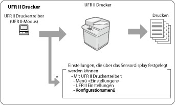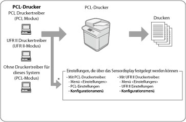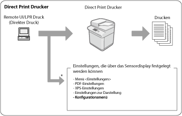 *Einstellungen, die nicht über den Druckertreiber oder ein Remote UI definiert werden können, sondern über das Display vorgenommen werden, sind mit einem Sternchen (*) gekennzeichnet.