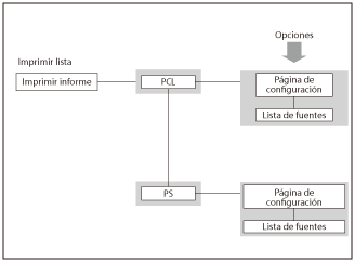 En función de la emulación de impresora, algunas opciones de impresora no estarán disponibles. Las Opciones de informes solo están disponibles para las impresoras PCL o PS. |