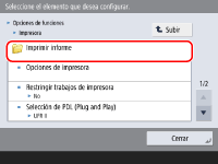Pulse [Opciones de funciones] → [Impresora] → [Opciones de impresora].