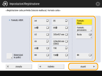 1 | Premere <Formato personalizz.>. ![]() Il formato della carta può essere specificato tramite <Formato libero>, che elimina la necessità di inserire le impostazioni relative al formato. Specificare <Formato libero> quando si carica carta dal formato sconosciuto da utilizzare per la copia o quando il formato della carta è già registrato nel driver della stampante. |