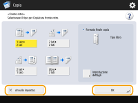 Visualizzare la guida delle funzioniPremere <Istruzioni assistite> per visualizzare una schermata che mostra come utilizzare le funzioni della macchina nonché i suggerimenti per la copia, scansione, ecc. Visualizzare questa schermata per maggiori informazioni sulle funzioni disponibili e sul relativo utilizzo. ![]() Esempio: istruzioni assistite per le funzioni Copia Quando si seleziona una voce dall'elenco, appare la schermata delle istruzioni assistite. ![]() Utilizzare la funzione "?"In base alla funzione visualizzata, nella parte superiore destra della schermata può apparire . Premere per leggere la descrizione e il metodo di funzionamento della funzione.![]() Premere <Fine> per tornare alla schermata precedente. Utilizzare come se si trattasse di uno smartphone (scorrere/pizzicare/selezionare e trascinare)In alcune schermate, è possibile cambiare pagina o scorrere sullo schermo con il dito verso l'alto/il basso o verso sinistra/destra come se si trattasse di uno smartphone. ![]() Inoltre, è possibile ingrandire o ridurre la schermata eseguendo il movimento di pizzicatura con due dita. La schermata allargata può essere trascinata con un dito. Personalizzazione dell'aspetto del display e delle condizioni di funzionamento ![]() Se <Abilitazione ingrandimento schermo> è impostato su <On>, l'intera schermata viene ingrandita/ridotta quando si eseguono operazioni di riduzione con pizzico nella schermata di anteprima. Se <Abilitazione ingrandimento schermo> è impostato su <Off>, viene ingrandita/ridotta solo l'immagine di anteprima.