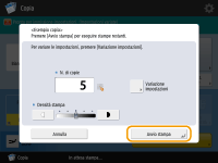 Premere <Avvio stampa> per stampare il numero di copie specificato. Se al passo 5 è stato selezionato <Tutte le pagine>, viene stampato il numero di copie meno una. Se al passo 5 si seleziona <Pagine specificate>, sarà stampato il numero totale di copie.