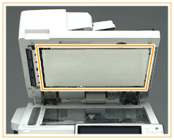 Pulire il lato posteriore dell'alimentatore e il vetro di lettura.