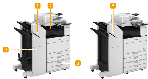 Para obtener más información sobre la combinación de opciones que se pueden instalar en el equipo, póngase en contacto con su distribuidor local autorizado de Canon. Es posible que algunas de las opciones no se muestren, dependiendo de la configuración del equipamiento opcional instalado en el equipo. |