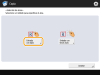 Especificar áreas más complicadas Puede especificar áreas con una forma complicada tal y como se muestra en el dibujo de abajo. Pulse <Entrar var. ptos.> en la pantalla en el paso 7 y especifique el área utilizando entre 4 y 10 puntos. Después de marcar el último punto, pulse <Establ.var.ptos> para confirmar el área. Con este método solamente puede especificarse un área. Además, no podrá designar un área rectangular y un área poligonal al mismo tiempo. ![]() Especificar un área más precisa Debido a que las áreas se especifican en la pantalla de vista preliminar, es posible que se desplacen al realizar las copias. Si desea especificar áreas más precisas, introduzca las dimensiones de antemano. Como se indica en el dibujo, mida la distancia entre el borde derecho del área y el borde derecho del original (X1), entre el borde izquierdo del área y el borde derecho del original (X2), entre el borde superior del área y el borde superior del original (Y1) y entre el borde inferior del área y el borde superior del original (Y2), pulse <Entrada con teclas num.> en el paso 5 e introduzca las dimensiones de X1, X2, Y1 y Y2 con las teclas numéricas. ![]() Combinación con el modo de repetición de imagen Si desea utilizar <Encuadre> y <Repetir imágenes> al mismo tiempo, configure <Repeat Images> primero y, a continuación, <Encuadre>. |