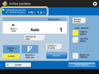 Al pulsar <Archivos guardados> en la pantalla de <Menú principal> y, a continuación, pulsar <Buzón>, <Espacio avanzado>, <Red> o <Dispositivo de memoria> para imprimir archivos, aparece la pantalla de configuración siguiente.