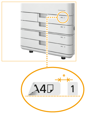 Sæt papirformatlabelen i samme højde som indikatoren for kassenummeret og ca. 5 mm til venstre.