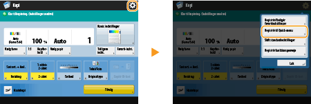 Hvis administratoren begrænser brugen af personlige knapper og delte knapper, kan de ikke registreres. Begrænsning af brugen af Quick-menu