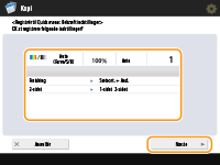 Hvis du vælger <Til> for <Start genkaldet (handlingen starter, når knappen trykkes ned.)>, starter kopiering, når du trykker på knappen på Quick-menu uden at trykke på  (Start). Vælg <Fra>, hvis du vil starte kopieringen manuelt, ved at trykke på  (Start).