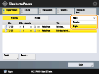 (Seis) käyttöpaneelissa viestin <<Seis>Valitse peruutettava kopiotyö.> ja kopiotöiden luettelon näyttämiseksi, uloskirjautuneen käyttäjän viimeinen työ peruutetaan ja muita töitä jatketaan. |