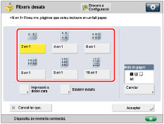 Aquest mode permet reduir automàticament diverses pàgines per incloure-les en una sola pàgina quan imprimiu un fitxer PDF. Podeu reduir l'original per incloure 2, 4, 6, 8, 9 o 16 pàgines en una pàgina impresa.