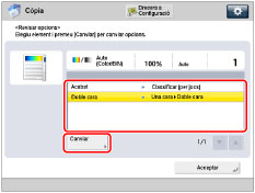 Canvieu el mode de còpia seleccionat → premeu [Canviar].