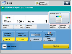 Quan hi ha un mode de còpia seleccionat, un triangle cap a la dreta (  ) al botó [Canviar] indica que hi ha més pantalles d'opcions disponibles si premeu la tecla. |