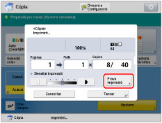 Quan hagi acabat la impressió de prova, l'equip reprendrà el treball automàticament. Si cal ajustar les opcions, premeu [Cancel·lar] o i feu l'ajust necessari. |