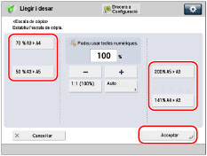 Podeu utilitzar escales de còpia (zoom) predeterminades per ampliar o reduir originals de mida estàndard a altres mides estàndard.