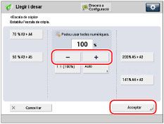 Premeu [-] o [+] per especificar una escala de zoom → premeu [Acceptar] → [Tancar].