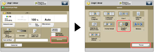 Premeu [Opcions] → [Negatiu/Positiu] → [Tancar].