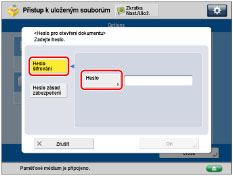 Stiskněte [Volby] → [Heslo pro otevření dok.].