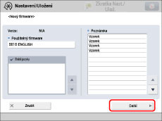 Jsou-li k dispozici poznámky k vydání firmwaru, příslušné informace se zobrazí.