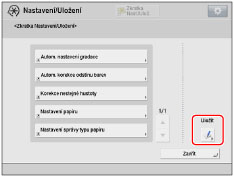 Tlačítko [Zkratka Nastavení/Uložení] lze zobrazit v horní části obrazovky nebo na obrazovce hlavní nabídky. Další informace viz v části