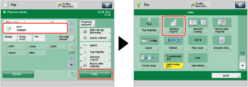 Skenujete-li originály s horizontální orientací (na šířku), např. A4R, dbejte na to, abyste je do podavače uložili horizontálně. Uložíte-li takovéto originály vertikálně, zadní strany originálů stroj naskenuje vzhůru nohama. |