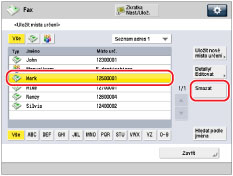 Vyberte místo určení, které chcete smazat → stiskněte [Smazat].