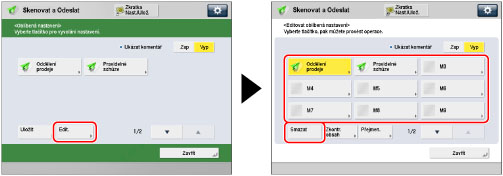 Stiskněte [Editovat] → vyberte tlačítko, které chcete smazat → stiskněte [Smazat].