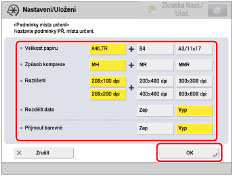 <Velikost papíru> | Nastavte velikost papíru, kterou chcete použít pro odesílání. A5 je zahrnuto do [A4/LTR]. |