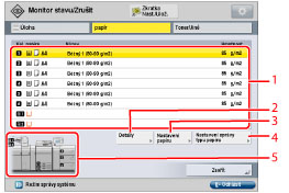 4 | Nastavení správy typu papíru Po stisknutí tohoto tlačítka můžete do systému stroje uložit vlastní typy papíru. |