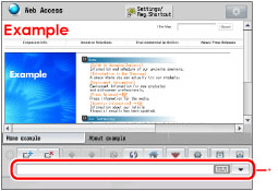 For instructions on entering characters, see "Zadávání znaků z displeje dotekového panelu." Depending on the entry area of the Web page, the text field of the keyboard may be displayed with multiple entry lines. Depending on the size of the Web page or images, the Web page may not be displayed correctly or an error message may appear. Depending on the image size, it may take some time for GIF animations to be loaded. If multiple windows are open, the windows are not differentiated, and URLs are saved in the order that they were entered. |