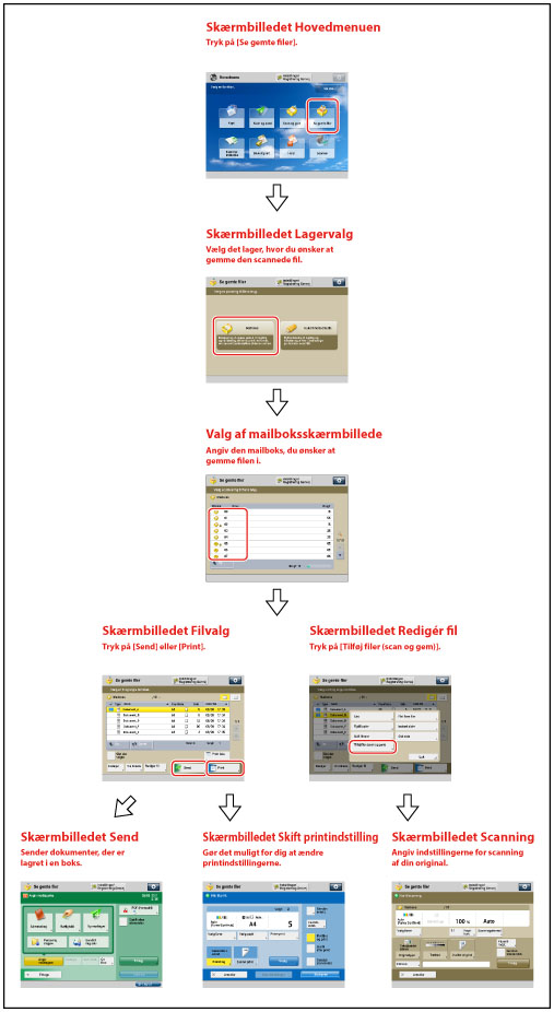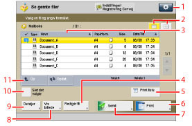 5 | [Print liste] Tryk for at printe en liste over filer, der er gemt i en mailboks. |