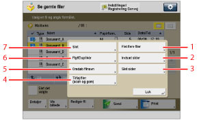 4 | [Flet filer og print] Tryk for at flette flere filer og printe dem som én enkelt fil. Denne tast bliver kun vist, hvis der er valgt flere filer. |