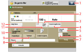 7 | [Tilvalg] Tryk for at angive praktiske scanningsindstillinger såsom scanning af blandede originalformater eller opdeling af originaler i flere sæt. |