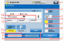 3 | [Skift antal kopier] Tryk for at angive antallet af print, hvis der er valgt flere filer. Denne tast bliver kun vist, hvis der er valgt flere filer. |