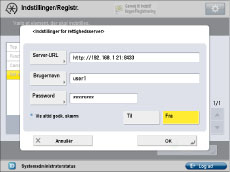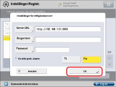 Tryk på [Server-URL] → [Indstillinger for rettighedsserver].