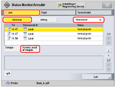 Hvis du trykker på [Job] → [Joblog] → og vælger [Modtag] på dropdown-listen, vises [Kontrol. modt af I-faxjob] også. |