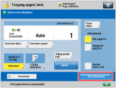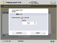 Om het afdrukken te annuleren, drukt u op [Annuleren]. (U kunt het afdrukken niet annuleren door op te drukken.)Om de volgende afdrukopdracht te reserveren, drukt u op [Sluiten] → volg de procedure voor het reserveren van een afdrukopdracht. (Zie "Reserveren van opdrachten.") |