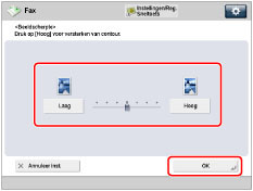 Om tekst of lijnen duidelijk te scannen, dient u een instelling richting [Hoog] te gebruiken. Om originelen met drukwerkafbeeldingen of andere grijstinten te scannen, dient u een instelling richting [Laag] te gebruiken.