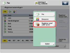 Wellicht dient u LDAP-servers vooraf in te stellen. Dit is afhankelijk van de netwerkomgeving. Voor meer informatie over het instellen van LDAP-servers raadpleegt u "Opslaan van een LDAP server." |