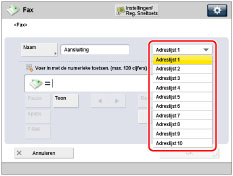 Druk op de vervolgkeuzelijst → selecteer een adressenlijst uit adressenlijsten 1 t/m 10.