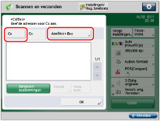 → [Scannen en verzenden] → [Cc Bcc].
