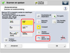 Lange originelen (432 mm of langer) kunnen niet worden gebruikt met [OCR (Doorz. tekst)]. Zelfs als u [OCR (Doorz. tekst)] selecteert, is het mogelijk dat tekst in sommige gevallen niet juist wordt gedetecteerd. (Zie "If OCR (Text Searchable) Performs Inadequately.") |