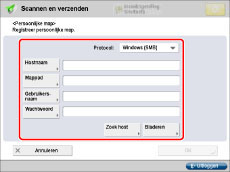 U kunt informatie registreren vanuit  op [Scannen en verzenden] op het scherm met basisfuncties, [Toegang opgesl. best.] op het scherm Verzenden en [Fax/I-Fax postbus] op het scherm Verzenden. |
