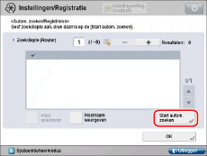 Voor instructies over het invoeren van tekens raadpleegt u "Tekens invoeren via het touch panel display." Als één van het volgende van toepassing is voor de machine bij de bestemming, wordt de melding <Kan geen apparaatinformatie ophalen. Wilt u deze als een bestemming opslaan?> weergegeven. Als u op [Ja] drukt, wordt <Verdeelinstellingen> op het scherm Details blanco. De hoofdschakelaar is uitgezet De machine op de bestemming is niet aangesloten op het netwerk Er is geen standaardtoets ingesteld in [TLS-instellingen] in [Voorkeuren] (Instellingen/Registratie) [Beperk ontvangst voor elke functie] is ingeschakeld voor elke functie [Gebruik HTTP] is uitgeschakeld in [Voorkeuren] (Instellingen/Registratie) |